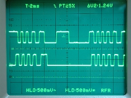 PLEASE NOTE: the mean pulse repeat period is 37.5ms. Ignore the display T=2ms & T=200us, this was a setup error by me, the timebase was set to variable. The pictures are for the purpose of demonstrating the missing pulse only..